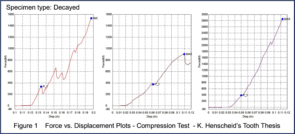 After ensuring safety shields were in place for the team, compression started; the machine’s software created force vs. displacement plots (ref: Figure 1).