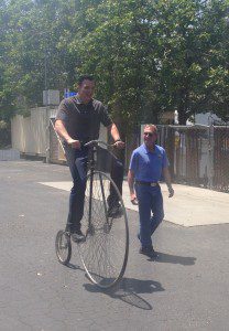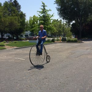 On a warm, sunny day in San Jose, our Westpak team members came to work as usual, but this time on two wheels instead of four. May is the celebration of Bike To Work Day, a part of the League of American Bicyclists’ National Bike Month. The Bay Area held its 22nd annual Bike To Work day on Thursday, May 12th and Westpak employees brought out their bikes large and small! One of our bike enthusiasts, Tres Wood, rode his 25 year old penny-farthing (a.k.a. highwheeler, ordinary or boneshaker) into