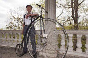 The differentiation between the names is quite interesting: it’s called the penny-farthing due to the size difference of the wheels corresponding to two different size coins. It also goes by highwheeler for obvious reasons, as well as ordinary to distinguish it from a geared bike. Due to the quality of the ride, its other, slightly more frightening nickname, is the boneshaker.