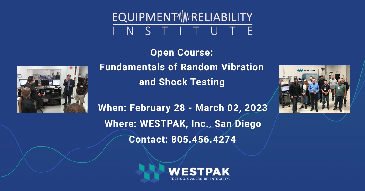WESTPAK’s accredited San Diego lab is proud to sponsor the Equipment Reliability Institute’s three-day course “Fundamentals of Random Vibration and Shock Testing” from February 28th to March 2nd, 2023.